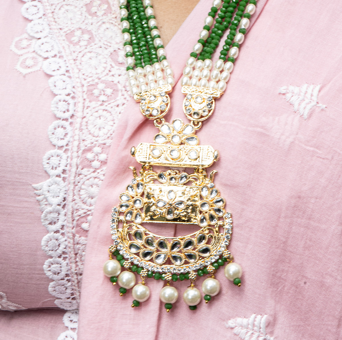 Add a regal touch to your traditional look with this Necklace Set. Designed with intricate stonework and paired with matching earrings, this piece is perfect for weddings, festivals, and ethnic occasions.