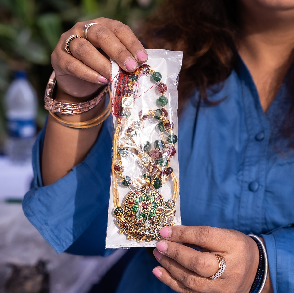 Add a regal touch to your traditional look with this Necklace Set. Designed with intricate stonework and paired with matching earrings, this piece is perfect for weddings, festivals, and ethnic occasions.